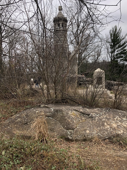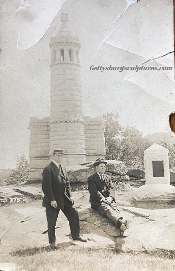 Group of tourists visiting Little Round Top (1910). The 44th New York Infantry Monument is in the background.