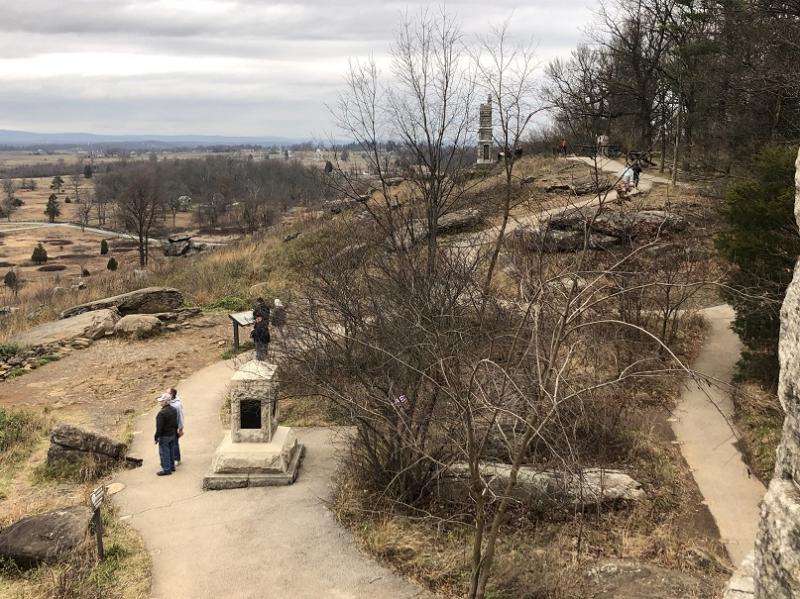 By comparing the Then and Now views, Little Round Top has become somewhat overgrown with bushes and small trees. This obstructs the modern view. Also, the pathways have changed and improved.