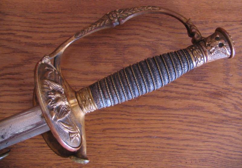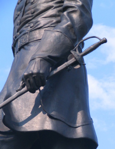 Gibbon holds a Model 1860 Staff and Field Officers Sword. One can almost see the knuckles of the hand through the gauntlet. It is this detail that makes these monuments works of art. The M1860 Staff and Field Officers sword on the sculpture is a nearly perfect recreation of an original as shown above.