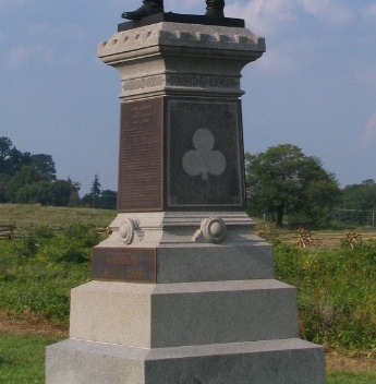 The symbol of the 2nd Corps is a "trefoil" and has been placed on the base of the memorial. Most regimental monuments at Gettysburg include various Corps symbols.