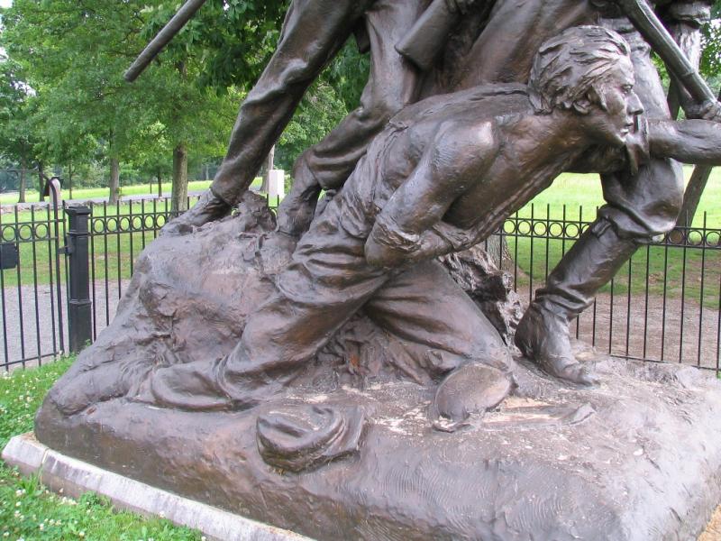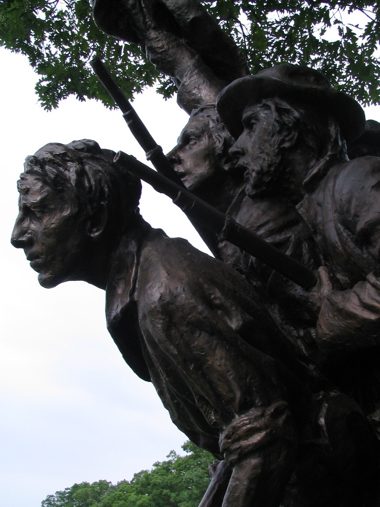 During the advance a veteran soldier would be giving encouraging words to a younger soldier in the front rank. We see this captured on the North Carolina Monument.