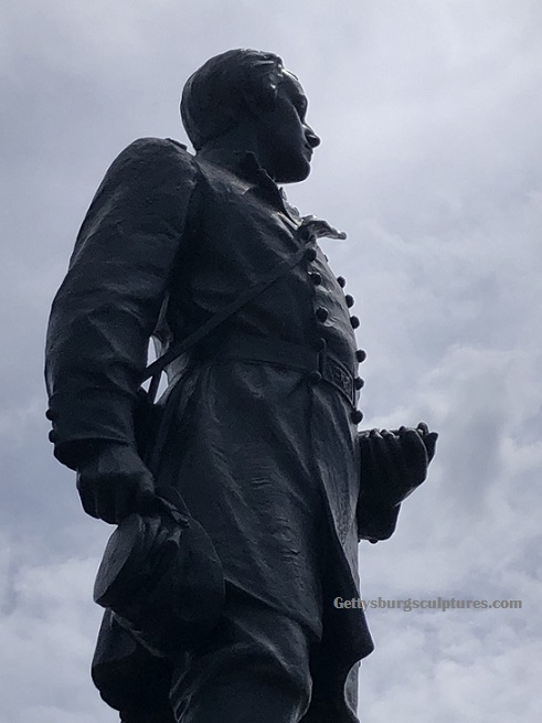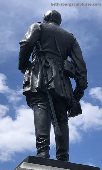 Barlow is shown barehanded. Most officer bronze statues at Gettysburg depict the subject wearing gauntlets.