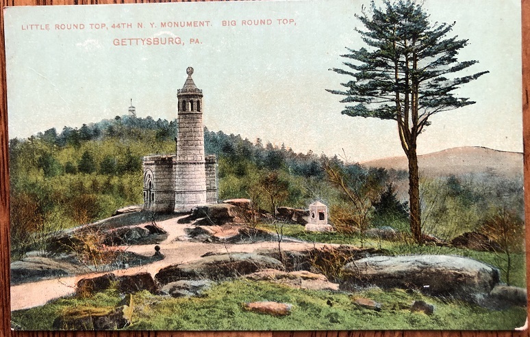 Group of tourists visiting Little Round Top (1910). The 44th New York Infantry Monument is in the background.