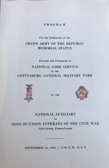 An original program from the 1956 dedication of the Grand Army of the Republic Memorial Statue (Woolson) at Gettysburg.