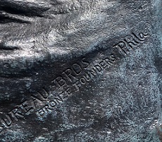 The stamp of the Bureau Brothers Bronze Foundry that cast the statue is located on the base.