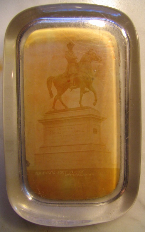 As tourists and old veterans visited the battlefield many souvenirs would be sold. Above is a paperweight with the image of the Hancock Statue. Maybe an old Second Corps veteran purchased it as a rememberance of his old commander.