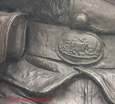 The Maryland State Seal waist belt buckle worn by the southern soldier.
